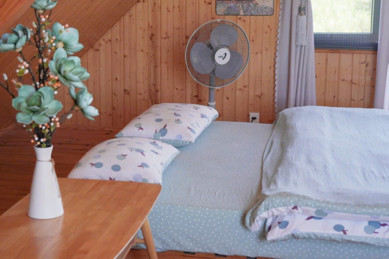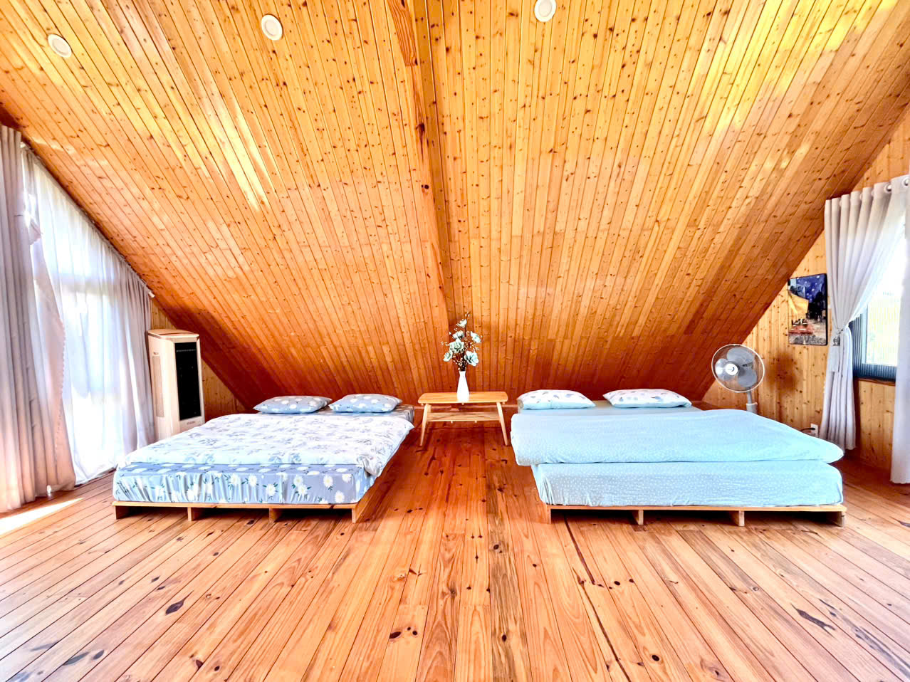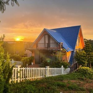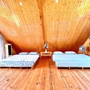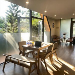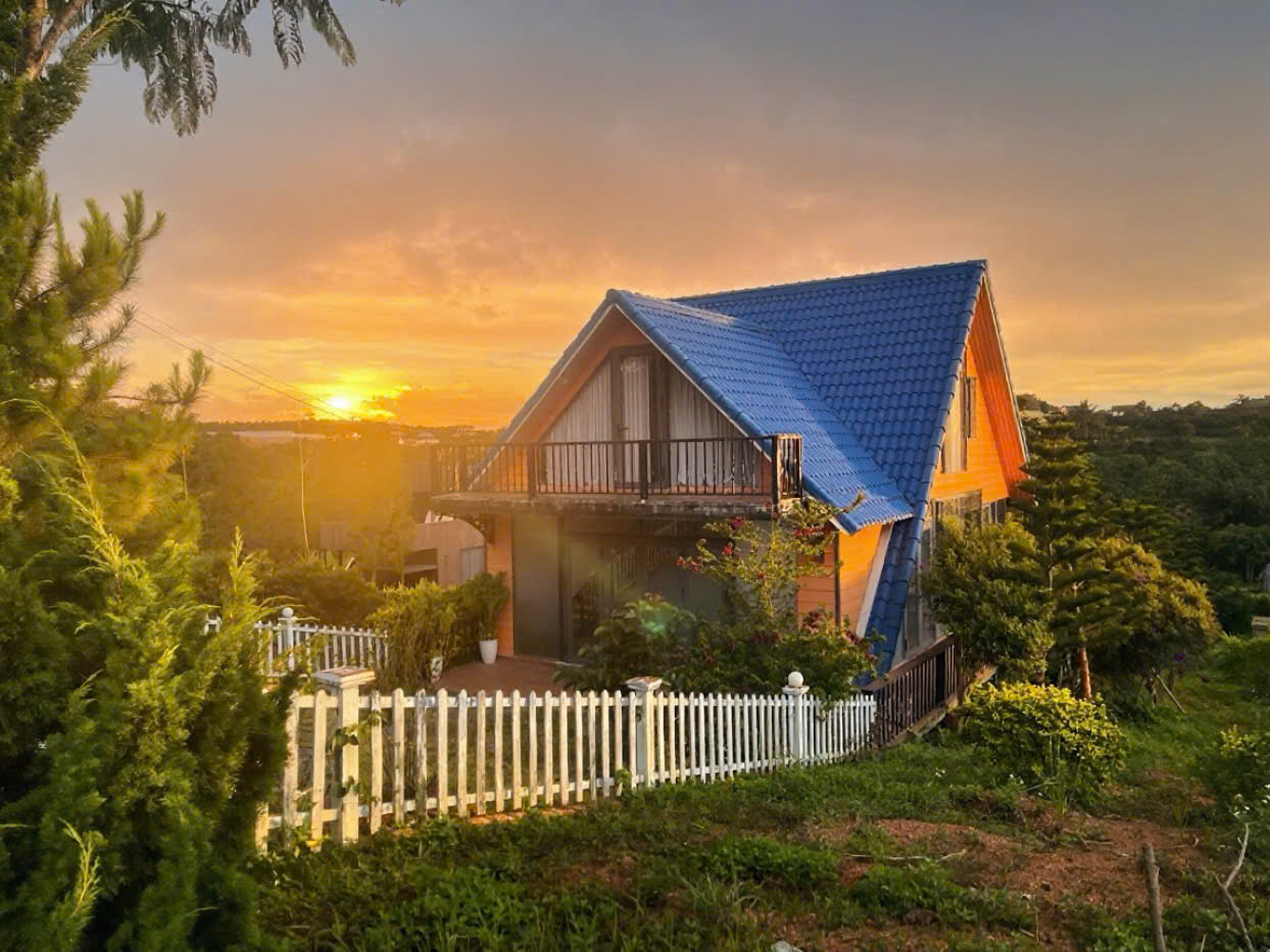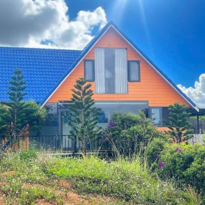 Khu Nhà Xanh mái tam giác nổi bật giữa thiên nhiên trong lành của Đà Lạt, mang đến không gian vừa hiện đại vừa ấm cúng. Với cửa kính rộng, bạn có thể ngắm bình minh và tận hưởng không khí mát lành mỗi sáng. Bên trong bố trí nội thất tiện nghi, thoải mái cho sinh hoạt và nghỉ ngơi, có giường đôi, đủ chỗ cho 8 người, rất phù hợp cho gia đình hoặc nhóm bạn. Đây là điểm dừng chân lý tưởng để vừa thư giãn vừa lưu giữ nhiều kỷ niệm đẹp.
